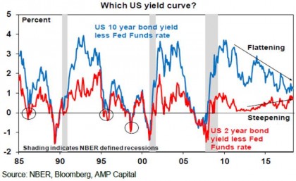 Ever since the Global Financial Crisis (GFC) there has been an obsession with looking for the next recession. In this regard, over the last year or so there has been increasing concern that a flattening yield curve in the US – ie the gap between long-term bond yields and short-term borrowing rates has been declining – is signalling a downturn and, if it goes negative, a recession in the US. This concern naturally takes on added currency given that the current US bull market and economic expansion are approaching record territory in terms of duration and given the trade war threat.