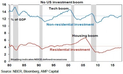Thirdly, cyclical spending in the US as a share of GDP remain slow. For example, business and housing investment are around long term average levels as a share of GDP in contrast to the high levels in one or both seen prior to the tech wreck and GFC.